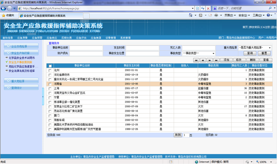 主要管理危險(xiǎn)化學(xué)品安全技術(shù)說(shuō)明書(shū)、安全生產(chǎn)事故案例、危險(xiǎn)化學(xué)品應(yīng)急速查手冊(cè)、安全法律法規(guī)及標(biāo)準(zhǔn)庫(kù),安全法規(guī)庫(kù)管理安全應(yīng)急相關(guān)的法律法規(guī)。