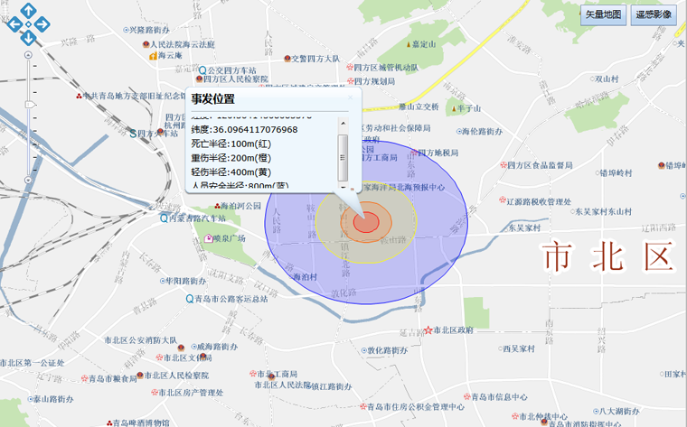 ●基于GIS實(shí)現(xiàn)了火災(zāi)、爆炸、泄露模型的動(dòng)態(tài)模擬和救援路徑、最近醫(yī)院路徑、最近消防路徑的指示,使應(yīng)急救援工作落在了實(shí)處。