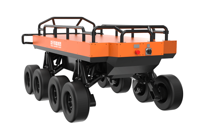 為應(yīng)對(duì)野外山地、叢林、泥濘等非結(jié)構(gòu)化地形,采用8輪與獨(dú)立懸掛的輪式底盤,平穩(wěn)適配崎嶇場(chǎng)地,穩(wěn)定穿越 陡坡、臺(tái)階、沙石地等,彌補(bǔ)輪式機(jī)器人在復(fù)雜地形的短板。同時(shí)可在 - 20℃至 50℃的寬溫區(qū)間穩(wěn)定作業(yè)。
