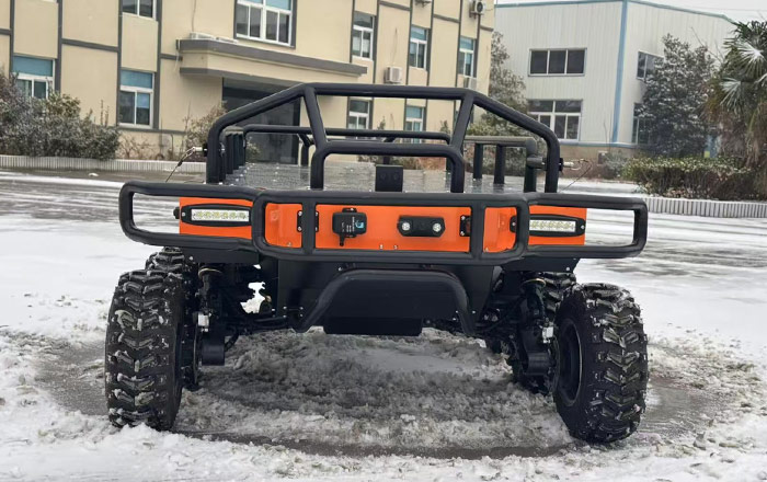 伴隨保障機(jī)器人搭載8×8 全輪驅(qū)動底盤,配備獨(dú)立懸架與大花紋越野輪胎,可輕松應(yīng)對山地、泥濘、荒漠、雪地、叢林等復(fù)雜路況,支持原地旋轉(zhuǎn)功能,最小轉(zhuǎn)彎半徑趨近于零,在狹窄巷道、林間小道、戰(zhàn)場掩體等受限空間內(nèi)也能靈活調(diào)整位置,精準(zhǔn)跟隨保障目標(biāo),避免因地形限制掉隊(duì)。