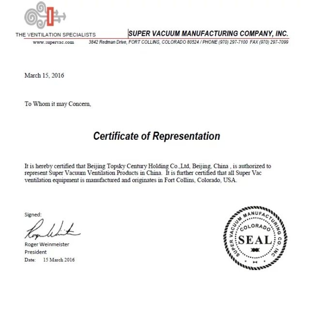 美國SUPER公司正式授權(quán)北京凌天世紀控股股份有限公司作為其機動排煙機,水驅(qū)動排煙機,電池驅(qū)動排煙機在華的總代理。 SUPER是世界知名消防排煙裝備制造商。