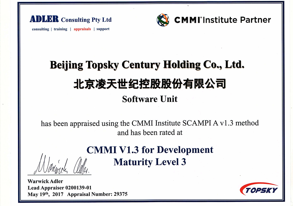 CMMI認(rèn)證的取得是北京凌天在高科技裝備發(fā)展的一次重要的里程碑,標(biāo)志著凌天在軟件設(shè)計(jì)、開發(fā)、項(xiàng)目管理及為用戶提供高質(zhì)量產(chǎn)品方面達(dá)到了國(guó)際化水平。