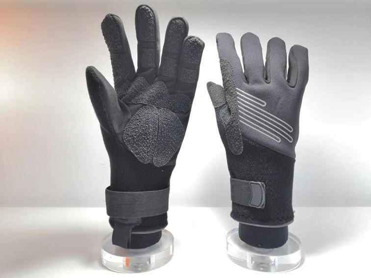 2.手心為合成皮革,并使用芳香尼龍纖維加強(qiáng),增強(qiáng)耐磨性,手背由2mm厚的氯丁橡膠制成,起到保暖的作用,并加有2mm厚的襯墊,提供了額外的保護(hù)。