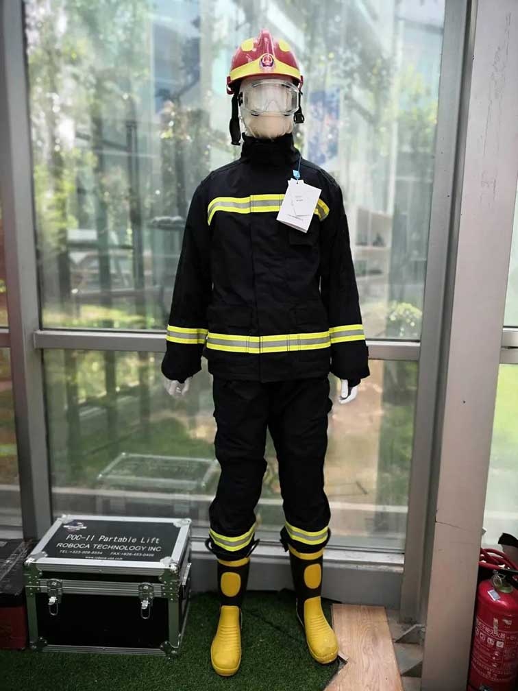 消防員滅火防護(hù)服是主要保護(hù)消防員身軀及四肢的防護(hù)服裝。在一般火災(zāi)狀態(tài)下,抗熱輻射性能良好,可較長時間保護(hù)消防員的滅火戰(zhàn)斗;但在危險狀態(tài)下應(yīng)采取水槍保護(hù)。應(yīng)避免與火焰和熔化的金屬直接接觸。