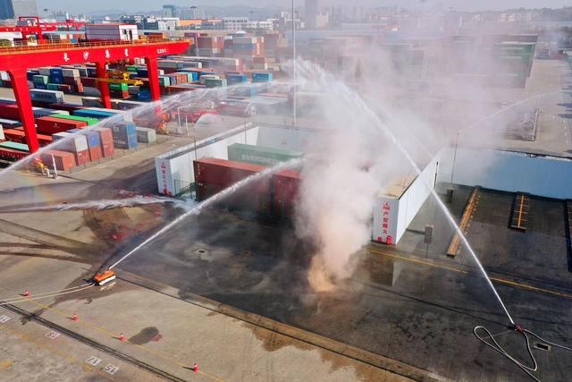 湖南日報11月11日訊(全媒體記者 黃利飛 攝影記者 徐行 通訊員 楊曼 胡富君)今天上午9時,長沙集星集裝箱碼頭,煙花爆竹集裝箱突發(fā)燃爆,聲響震耳欲聾,濃煙滾滾,火焰沖天。長沙市消防救援支隊、市消防救援支隊特勤大隊火速到達(dá),60米高射程消防車呼嘯而至,滅火機(jī)器人“大展身手”,10分鐘后大火撲滅……