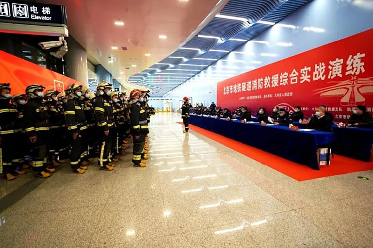 為全力做好2022年春運服務保障工作,防范化解重大安全風險,聚焦“全災種、大應急”救援需要和地鐵隧道火災滅火救援處置能力,1月21日凌晨,北京市全要素地鐵隧道火災滅火救援綜合實戰(zhàn)演練在北京地鐵大興機場線大興新城地鐵站開展。整個演練調集了10個消防支隊、52部消防車、248名消防救援人員參與。北京凌天2臺消防內(nèi)攻偵察機器人參與到此次演練中。