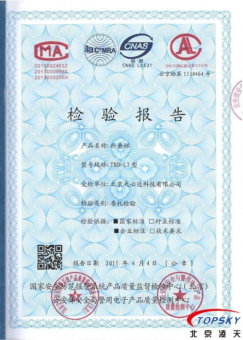 本產(chǎn)品通過公安部安全與電子產(chǎn)品檢測檢驗中心檢測,檢測報告編號:公京檢第1530464號。