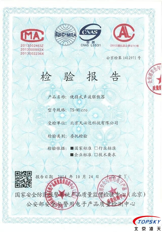 TS-Micro便攜式噪聲驅(qū)散器通過公安部權(quán)威機(jī)構(gòu)檢驗(yàn)