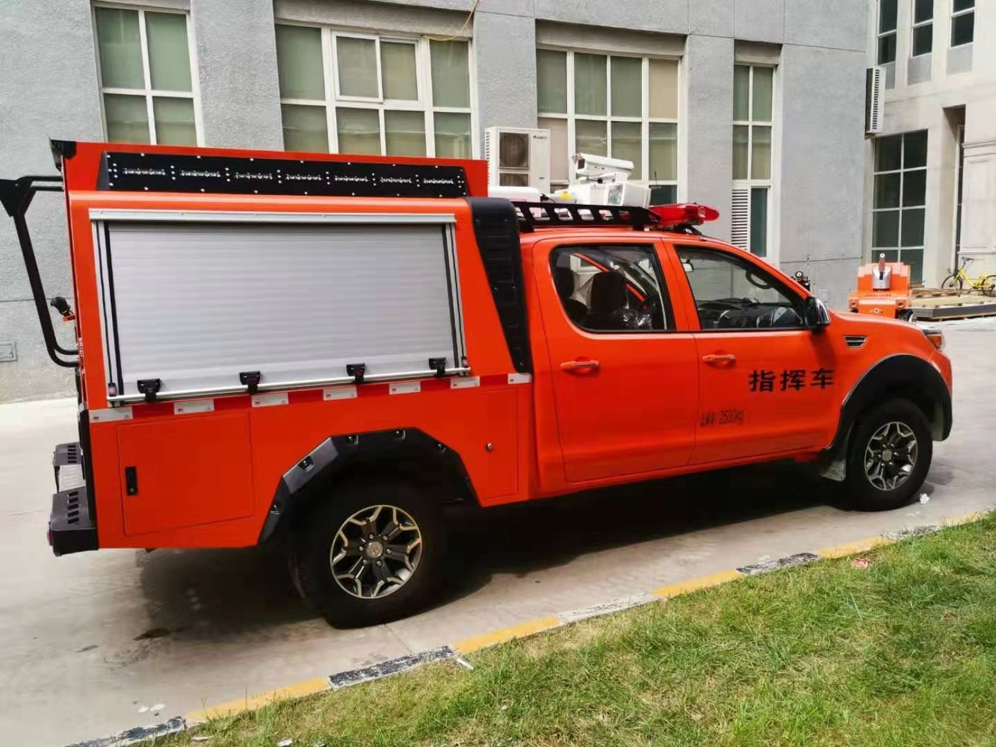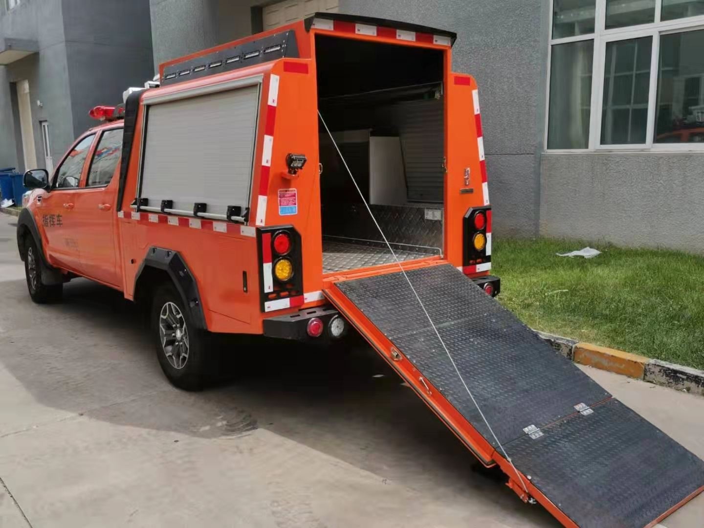 專門為特種機(jī)器人量身定做的一款機(jī)器人運(yùn)輸車,由皮卡車改裝,區(qū)別于傳統(tǒng)意義上大型運(yùn)輸車,體積更小,動力更足。車廂設(shè)計(jì)有升降照明系統(tǒng),解決了救援現(xiàn)場能見度低的問題,1.2-1.8米升降高度,可滿足不同照明需求。車體頂部裝有4G圖像傳輸系統(tǒng),可將現(xiàn)場情況實(shí)時傳輸?shù)街笓]部,有利于指揮現(xiàn)場調(diào)度。配有一體化機(jī)器人裝運(yùn)梯,最大承壓≥600Kg。后箱四周配有一圈小型照明系統(tǒng),可用于晚間或光線昏暗等環(huán)境。后箱設(shè)計(jì)有獨(dú)立儲物架,可放置機(jī)器人配套設(shè)備。兩側(cè)卷閘窗設(shè)計(jì)方便拿用。