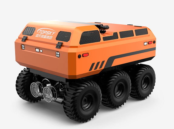 采用6×6輪式底盤,液壓驅動,裝有真空輪胎,另加配水下推進器,增加水中行進效率,水陸兩棲,可全地形行駛;