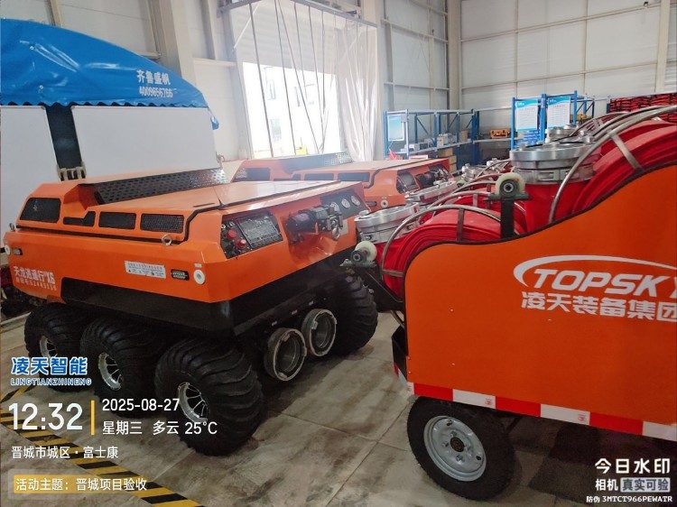 供排水機器人配有大口徑水帶收放車,采用電動快速鋪設系統(tǒng),操作簡單,實用性強等特點,解決了人力收放水帶的不便利性,增加了救援時間。