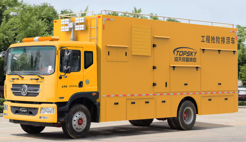 中大型排水搶險車自帶照明系統(tǒng),可切換至大流量或高揚程作業(yè), 一體化集成車載,具備全地形全天候作業(yè)能力??蔁o線控制,流量≥ 1000m3/h,連續(xù)工作時間≥12h;