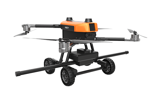 本無人機為北京凌天智能裝備集團研發(fā)的陸空兩棲航磁探測無人機,采用四旋翼機身設計,載重大,續(xù)航長,并且機體折疊標準化負載接口。同時,該無人機具備陸空兩棲功能,可以在地面行駛,行走系統(tǒng)可快拆。