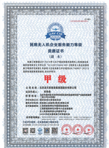 資格類民用無人機企業(yè)服務(wù)能力等級資質(zhì)證書(甲級)