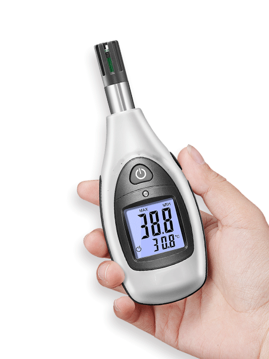 本產(chǎn)品具有小巧便攜、高對比度帶感應(yīng)背光LCD顯示屏、舒適手持感等特征;全新低功耗芯片設(shè)計(jì),輔以科學(xué)算法,快捷精準(zhǔn)的測量空氣溫度和濕度。